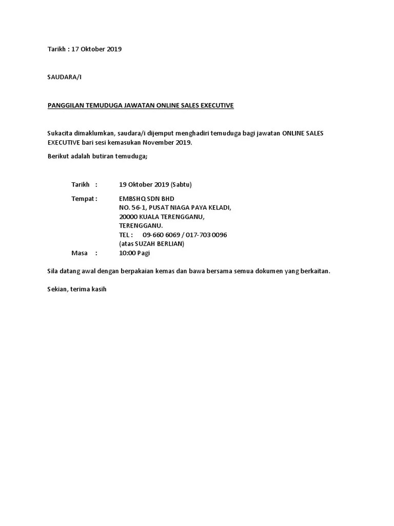 Surat panggilan temuduga pdf by haziqah . Amaran surat panggilan temuduga untuk tawaran biasiswa dan pinjaman pendidikan cikgu . Tawaran contoh surat panggilan temuduga. Panggilan temuduga jawatan online sales executive.